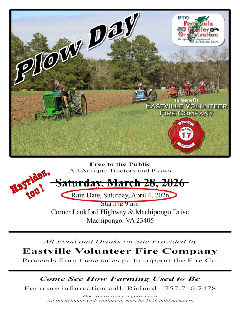 After input from the Newman family who has generously agreed to host the event and Eastville Fire Co. who will be providing food and drinks, it was decided that postponing Plow Day would be in everyone’s best interest.