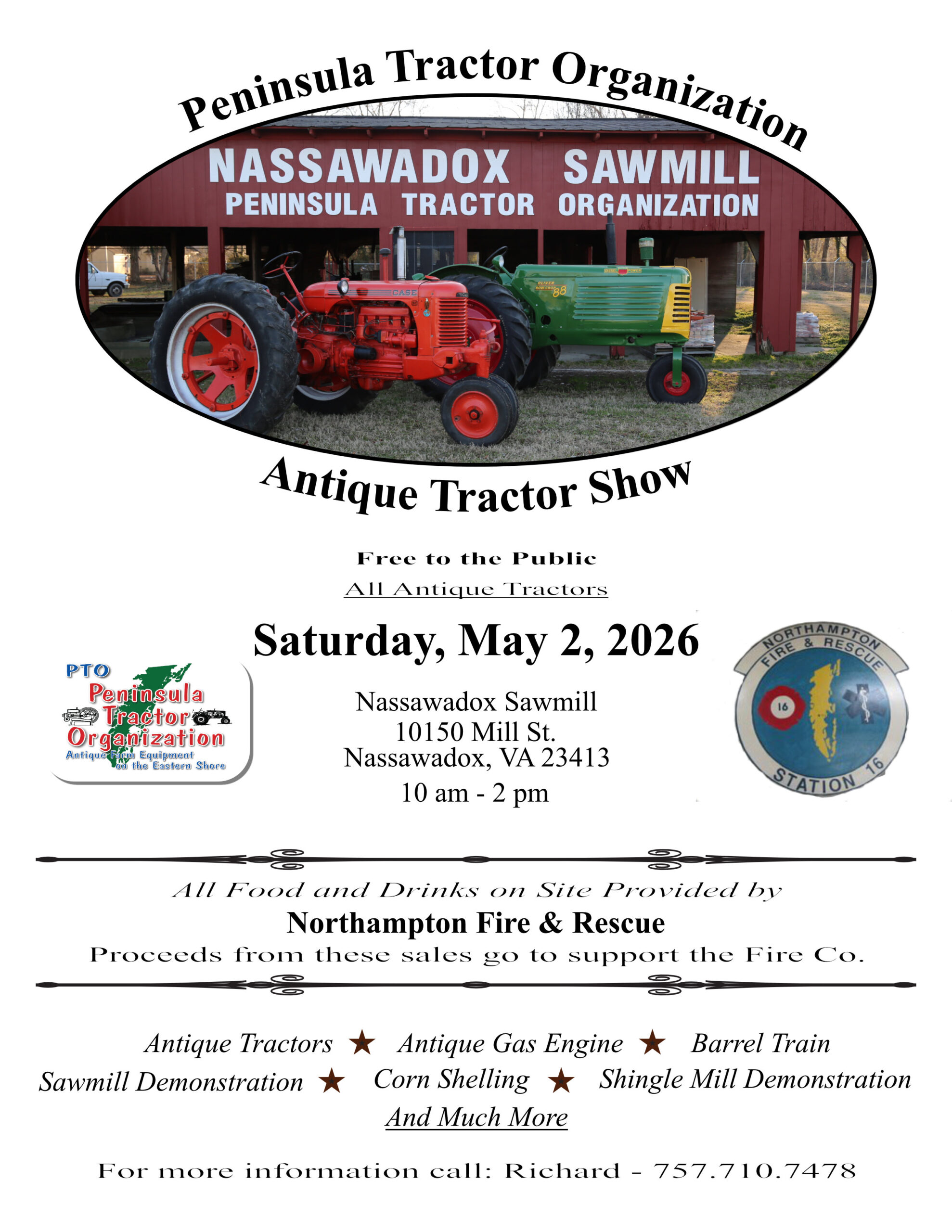 Join the Peninsula Tractor Organization on Saturday, May 3, 2025 for their their 3rd Annual Antique Tractor Day. The event starts at 10 am – 2 pm at the Nassawadox Sawmill, 10150 Mill St., Nassawadox, VA.